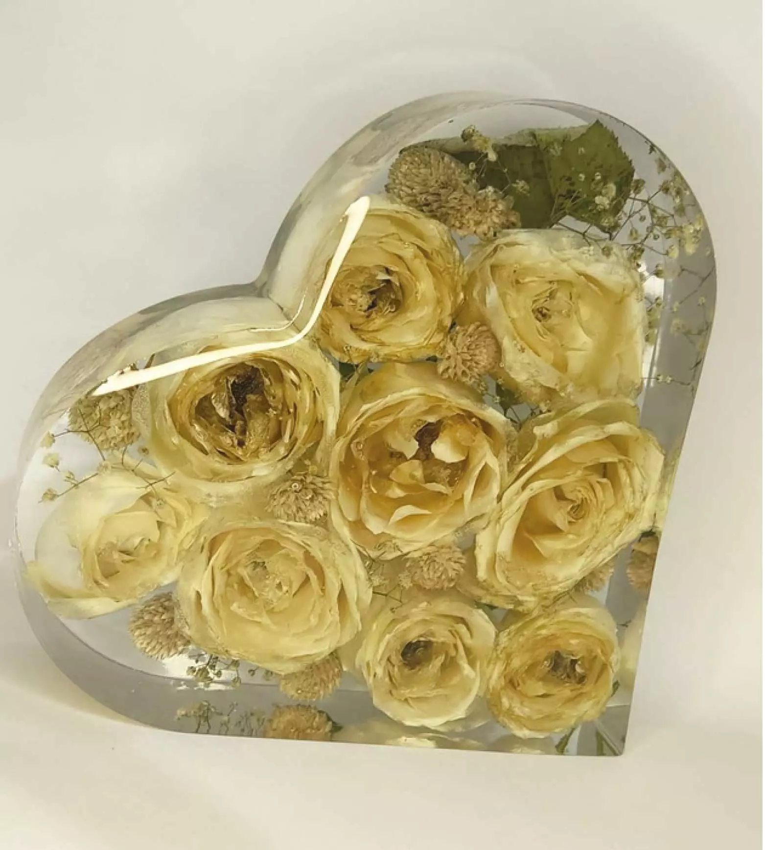 Na Chic Resine, cada eternização é um processo cuidadoso, feito com tempo, sensibilidade e atenção a cada detalhe. As flores passam por diferentes etapas de preparo antes de se transformarem em uma peça em resina, sempre respeitando o tempo necessário para que o resultado final seja fiel à memória do grande dia.
