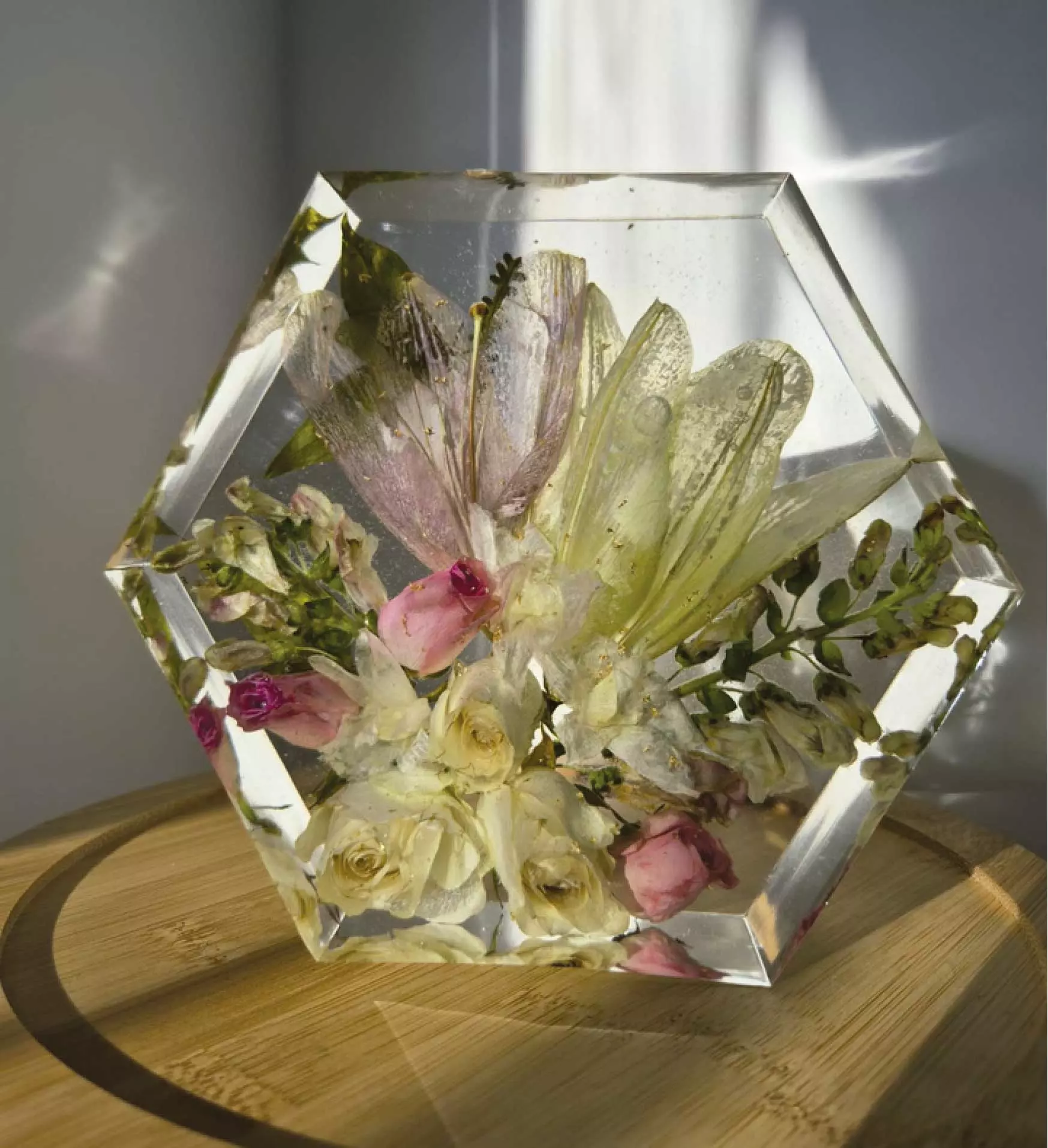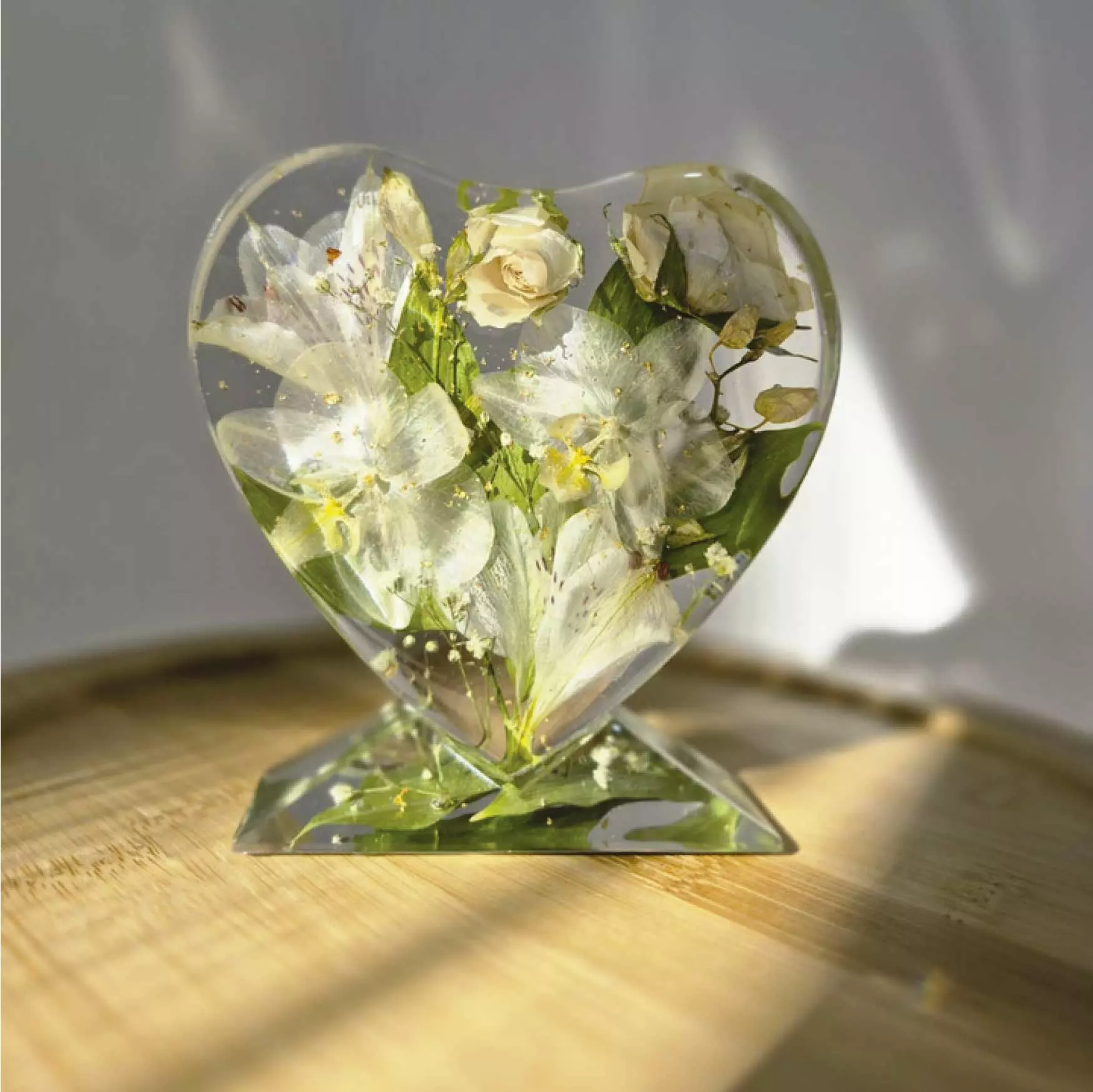 Além da eternização de buquês e flores, a Chic Resine também desenvolve eternizações afetivas em diferentes momentos da vida, como lembranças de maternidade, pets e outros objetos especiais que carregam significado e merecem ser preservados de forma eterna.