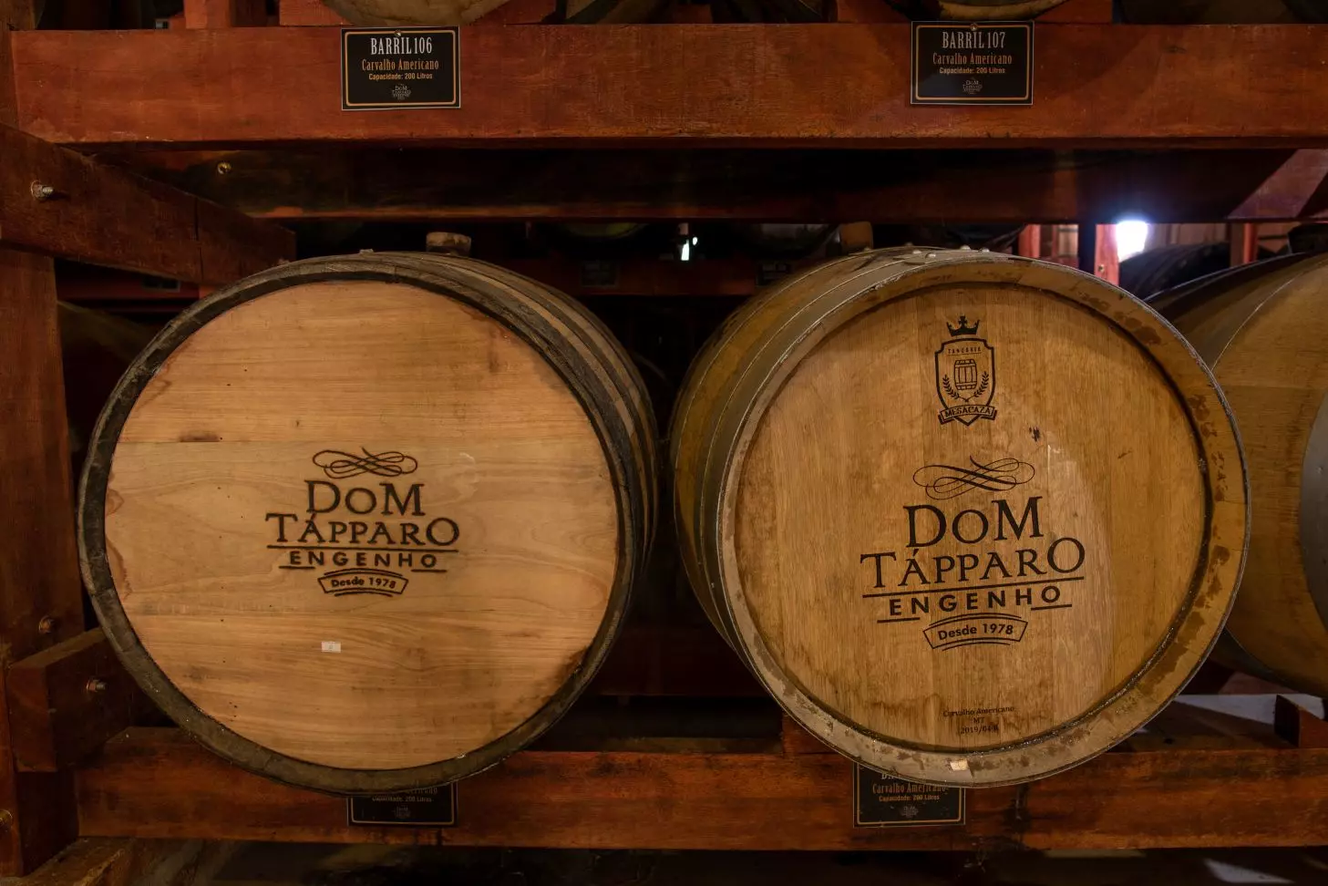 As cachaças envelhecem em barris de madeiras nobres, como Carvalho Europeu e Americano, Amburana, Jequitibá Rosa e Amendoim, resultando em rótulos complexos, equilibrados e com identidade marcante.