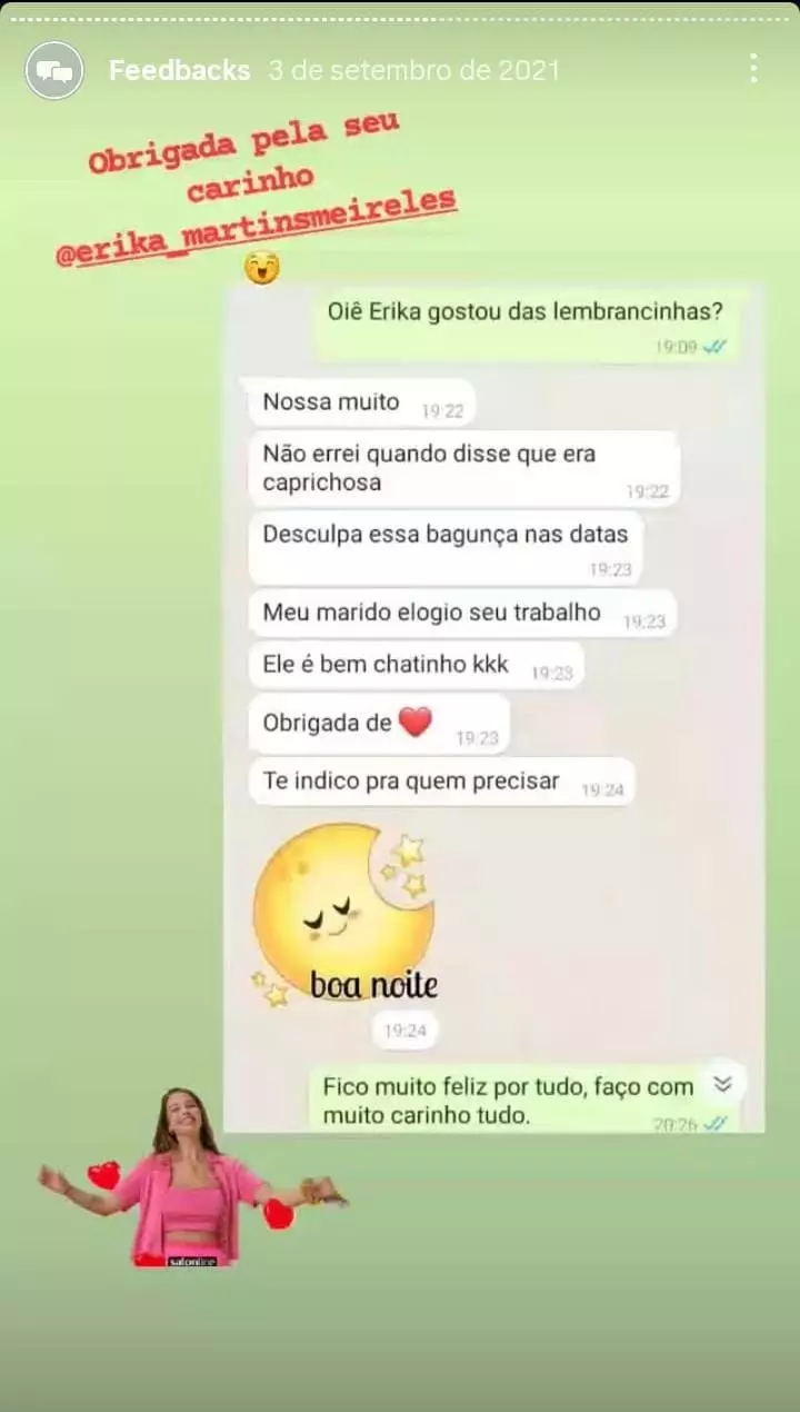 Tenho a empresa a 6 anos, trabalho somente com as redes sociais, e no conforto da minha casa, consigo hoje fazer meus horários e atualmente trabalho somente com a Érika Mimos & Art's.